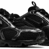Ce coloris Black / Anthracite / Chrome offre un look à la fois urbain, sombre et technique, renforcé par des détails métallisés qui soulignent la cage emblématique au talon. La tige en mesh respirant garantit une bonne ventilation, tandis que les renforts synthétiques apportent structure et maintien.